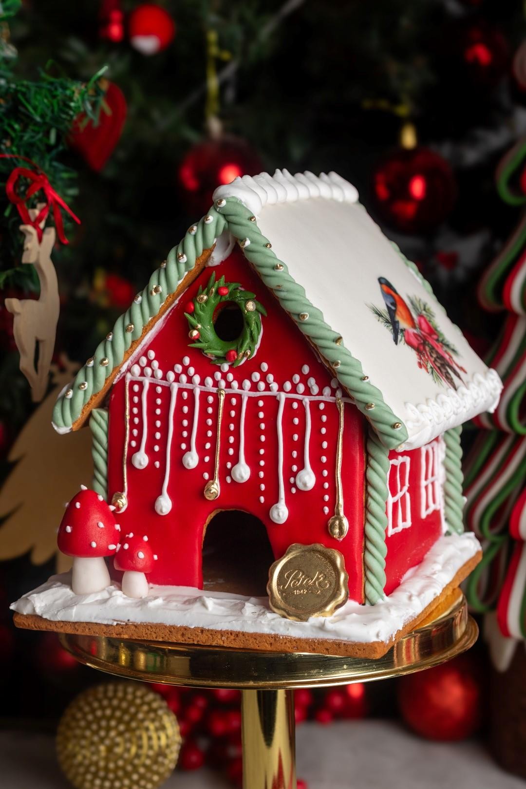 Petek Yılbaşı desenleri ile kaplanmış zencefilli, tarçınlı, karanfilli, tereyağlı kurabiye ev