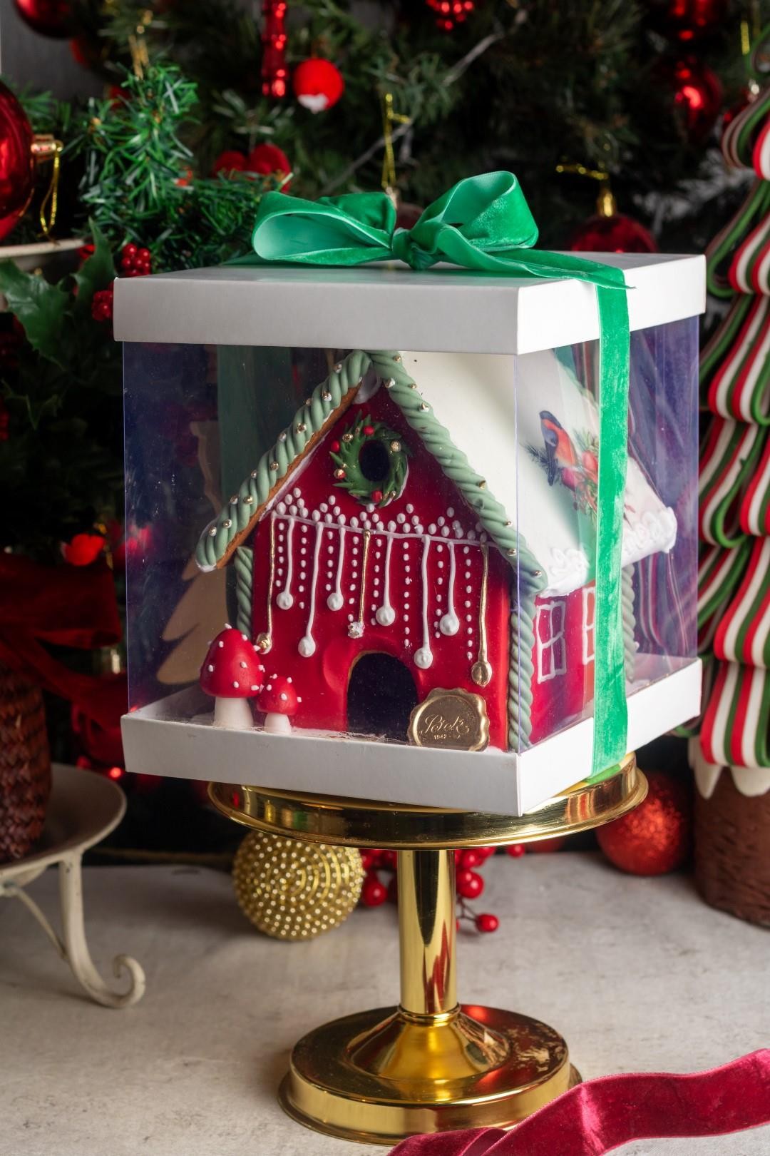 Petek Yılbaşı desenleri ile kaplanmış zencefilli, tarçınlı, karanfilli, tereyağlı kurabiye ev